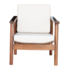 Estrutura produzida em madeira maciça, acabamento em verniz pu, assento e encosto estofados com espuma d-26 revestidos com corano náutico/facto.